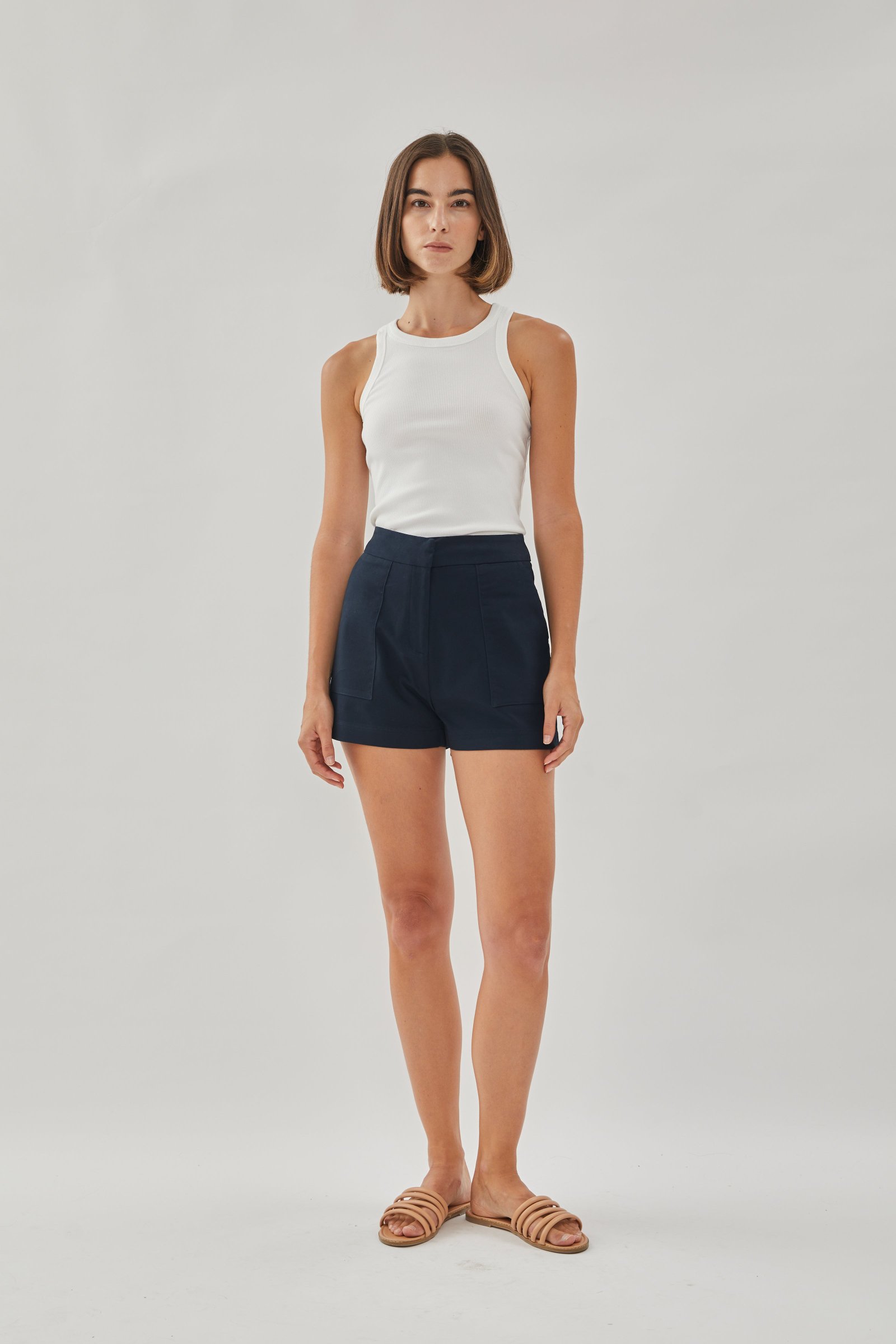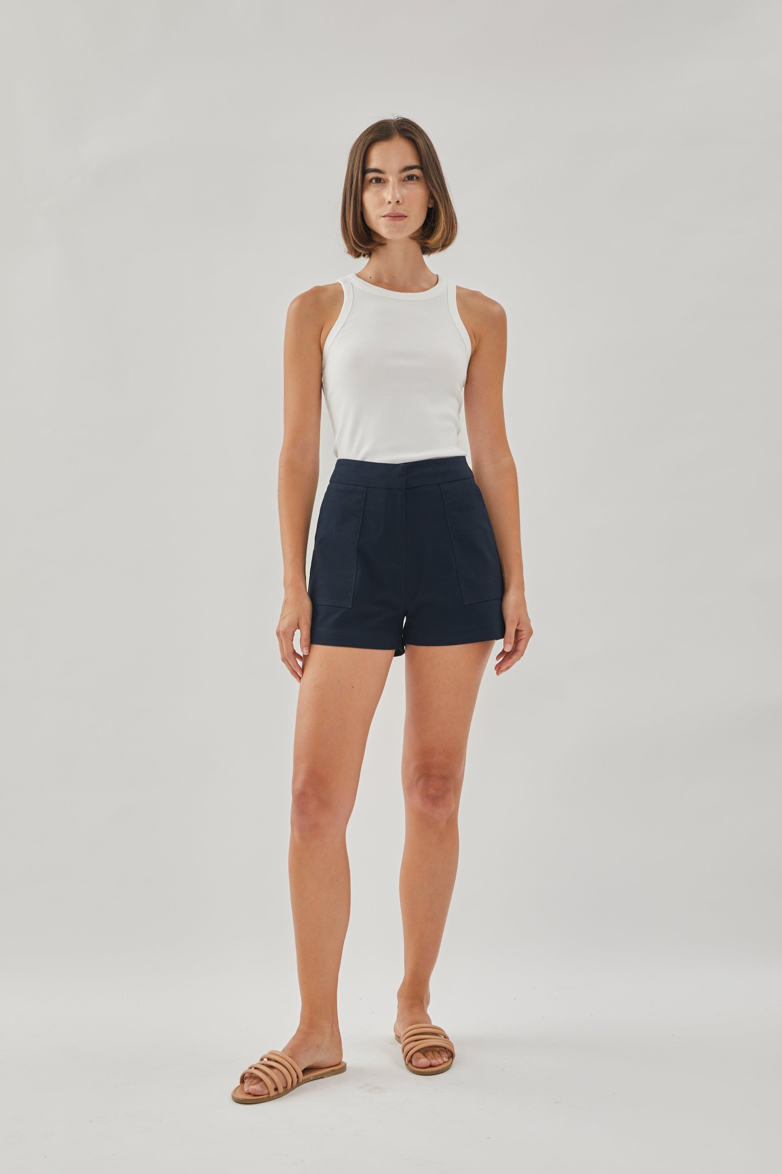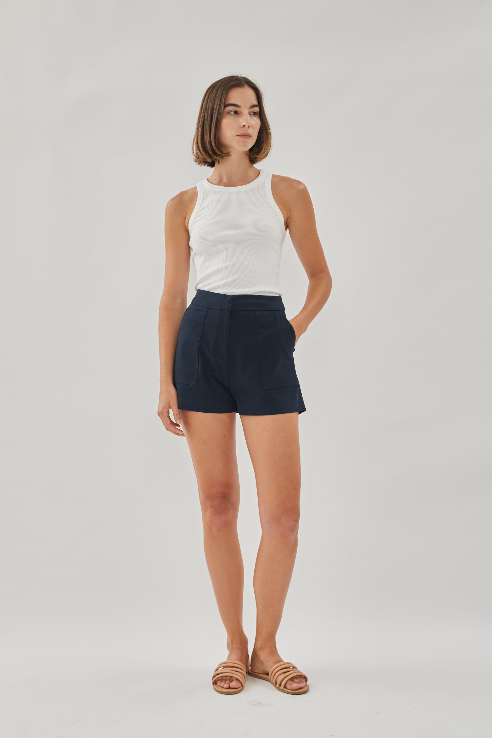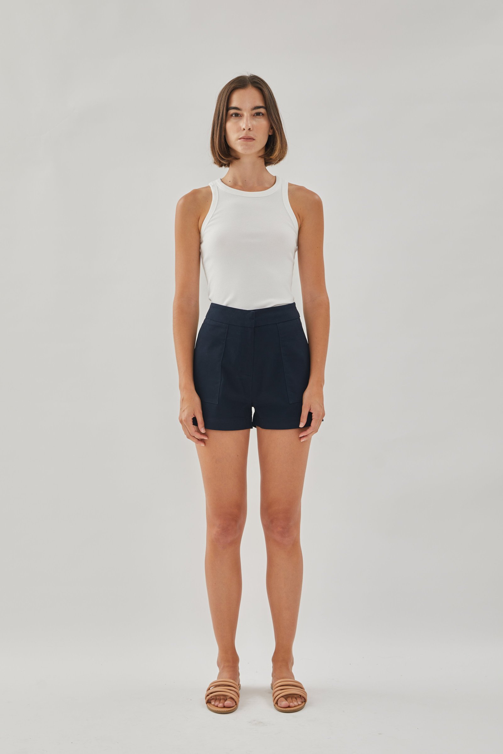Available in XS. S. M and L in Black. Dark Navy. Ecru. Sand. Mocha. Khaki and White. Made of cotton blend. not lined.