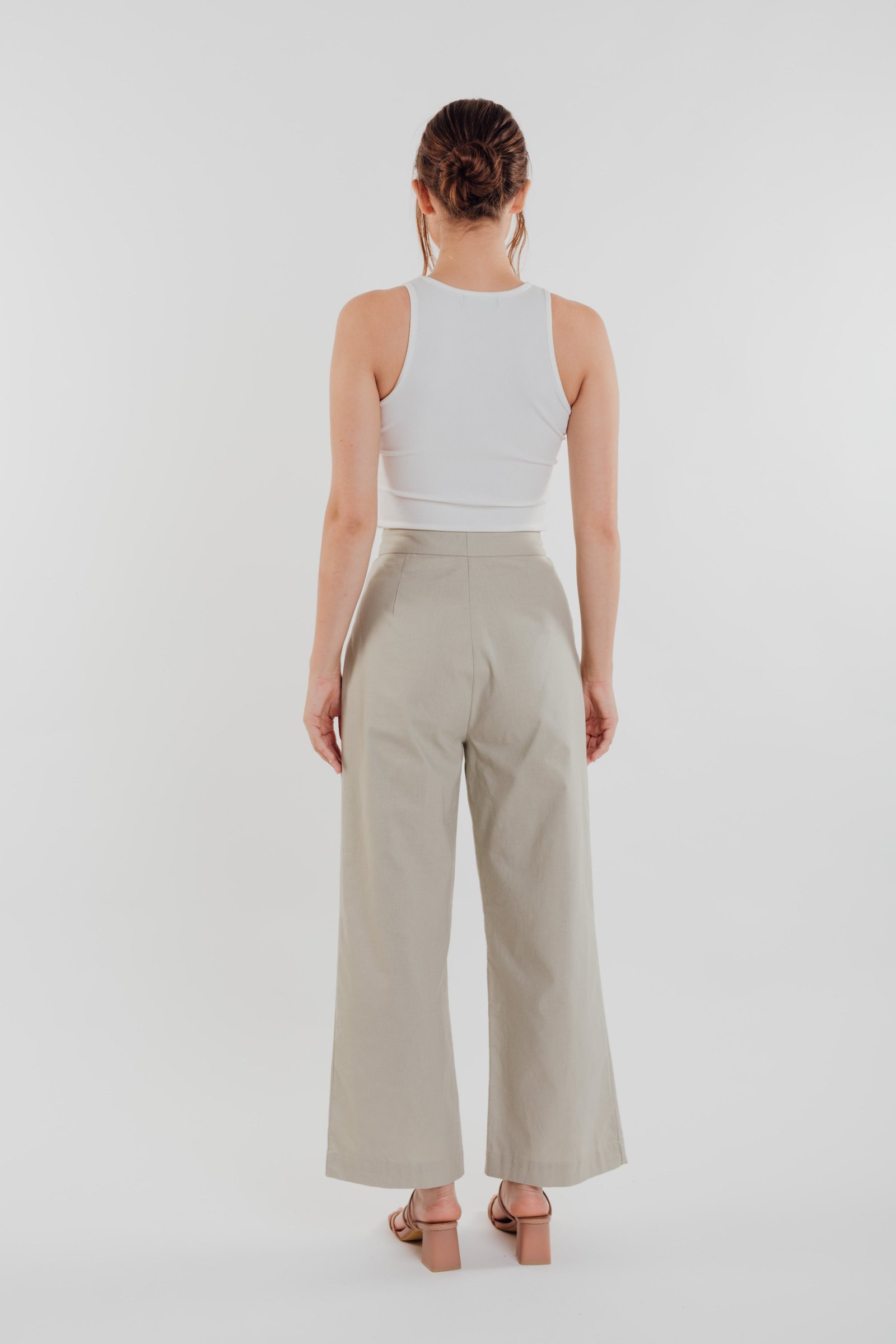 This look also features the Round High Neck Knit Tank Top in White.